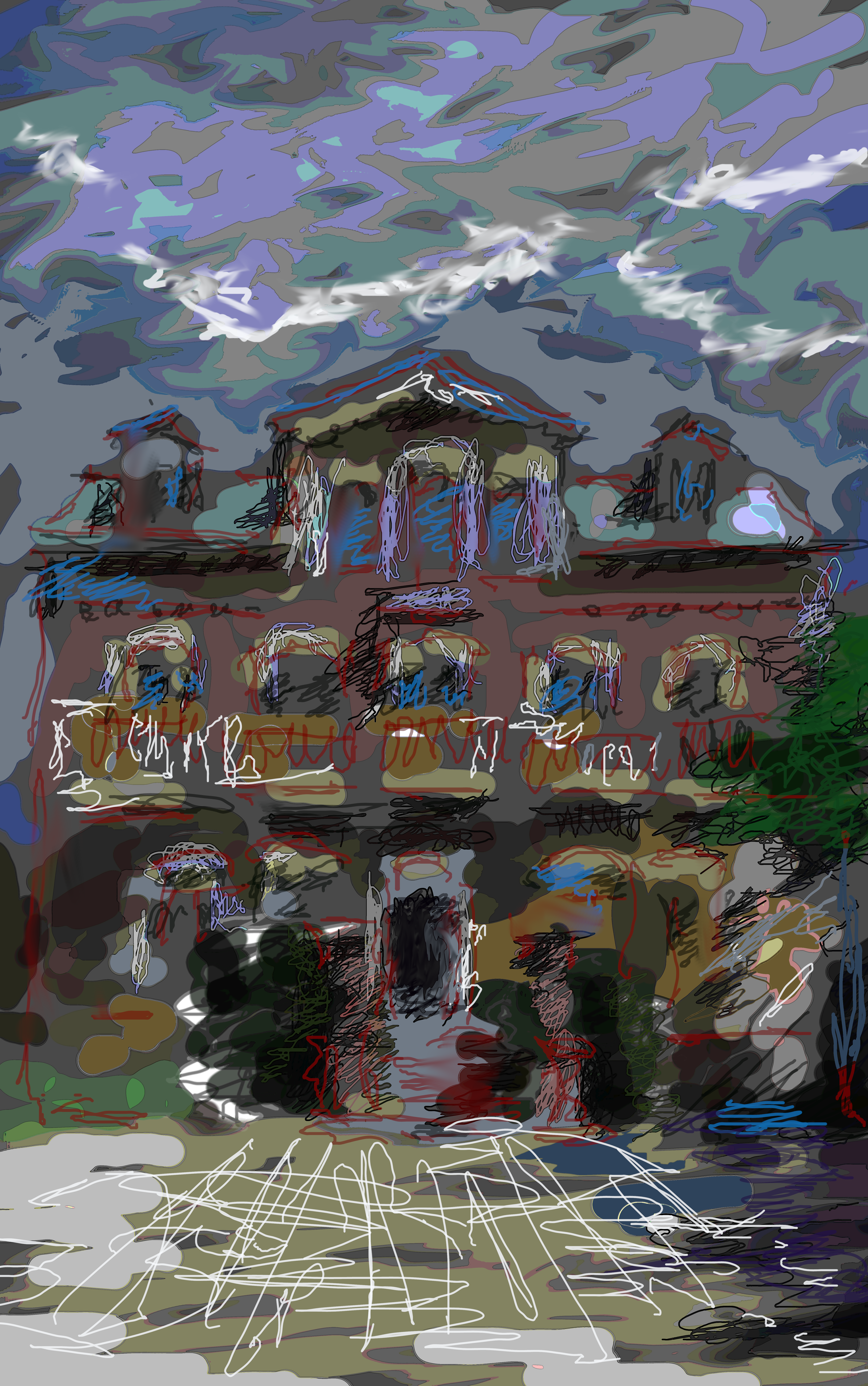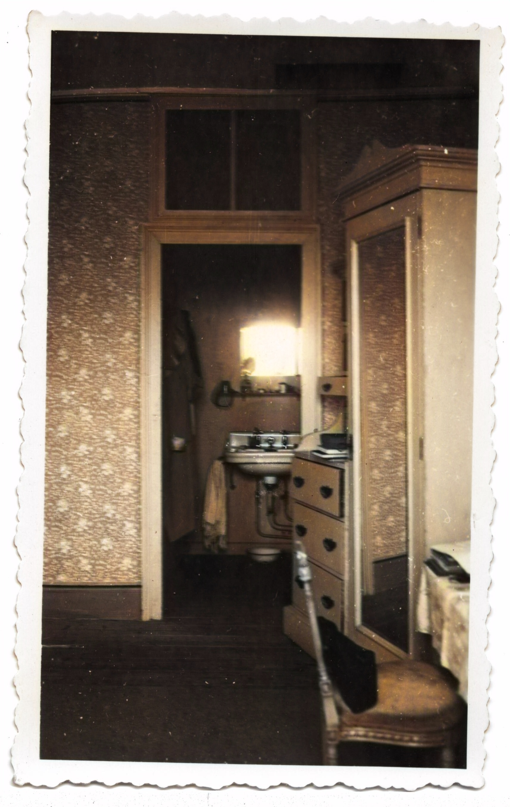 « Aujourd'hui, mes Schlumberger ( Amy, Denise, Alain ) et 2 des Barde sont venus me chercher pour monter déjeuner chez leur grand- mère à Bénouville. Trois bons kilomètres de route en montée. Ca glissait ferme. Arrivée devant un château à la française : grande façade aux lignes simples, sèches, pierre gris pâle, immenses fenêtres. A l'intérieur, galeries, boiseries Louis XV très sobres, de beaux vieux meubles. Hospitalité aimable et protestante, longue ballade dans la neige jusqu'aux genoux avec les gosses, bataille dans le parc, thé dans des tasses si fines qu'on avait peur de les briser. »