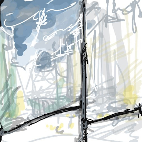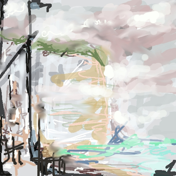 « Aujourd'hui, il fait plutôt froid -de gros nuages plombés, du vent  (rues du Havre = courants d'air permanents) ; sous cet éclairage, la ville, malgré tous ses bruits  (tramways, autos, vélos, cris des gens dans la rue)  semble morte. »