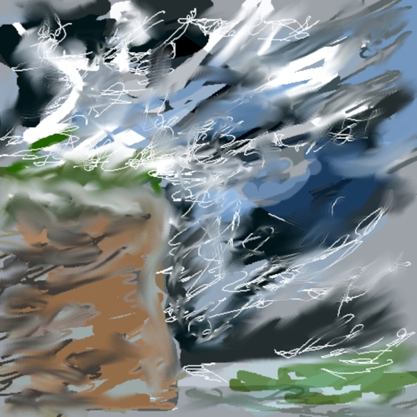 « Cette nuit, il a fait une violente tempête : d'énormes vagues, un vent à plainte humaine; ce matin le temps avait fraîchi mais tantôt, c'est à un ciel lavé, resplendissant que nous avons affaire. »